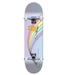 Meow Skateboards complete. Over the rainbow fade graphic board, blue background.