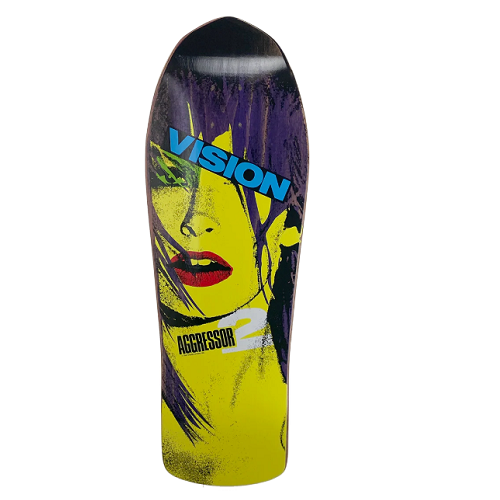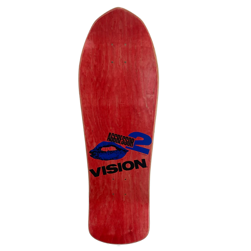 View full detailsVision skateboards deck. Classic aggressor 2 graphic. Modern concave. Stain: Purple Size: 10.0 x 30.25 Wheelbase: 15.25 Nose: 4.25 Tail: 6.5